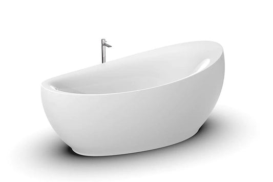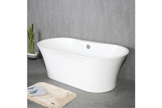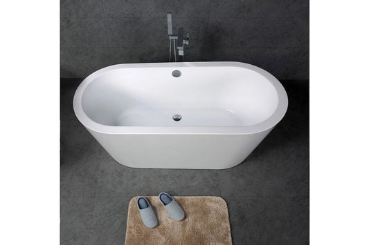 TONA Queen 67" Glossy White Acrylic Freestanding Oval Bathtub With Chrome-Plated Drain Cover & Overflow Cover