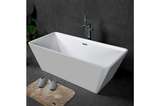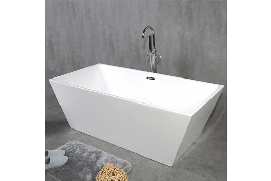 TONA Star Series Rectangular Acrylic Freestanding Bathtub in Glossy White with Crome-Plated Drain Cover and Overflow Cover