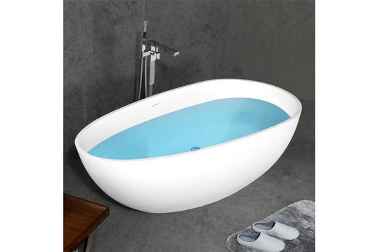 TONA Oceania 67" Matte White Oval Cast Stone Freestanding Bathtub Ice Crack Texture with Chrome-Plated Drain Cover & Overflow Cover