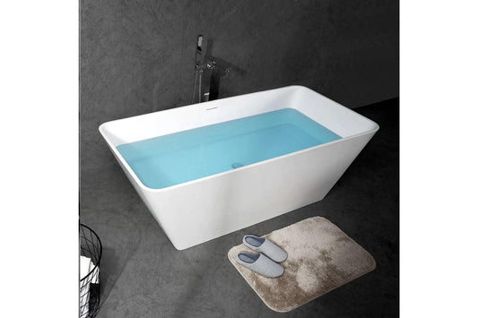 TONA Royal 67" Matte White Rectangular Cast Stone Freestanding Bathtub With Chrome-Plated Drain Cover and Overflow Cover