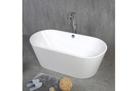 TONA Harmony 59" Glossy White Acrylic Freestanding Bathtub with Chrome-Plated Drain Cover and Overflow Cover