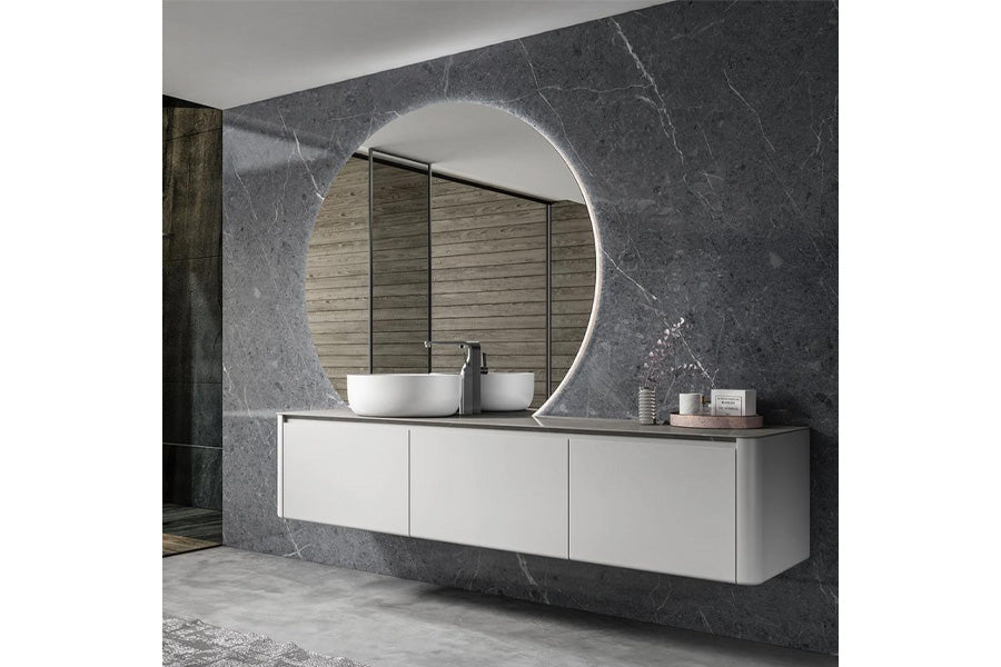 - Design: Italian porcelain slab. Marble grain and touch. Three big drawers provide large storage space for all bathroom essentials.