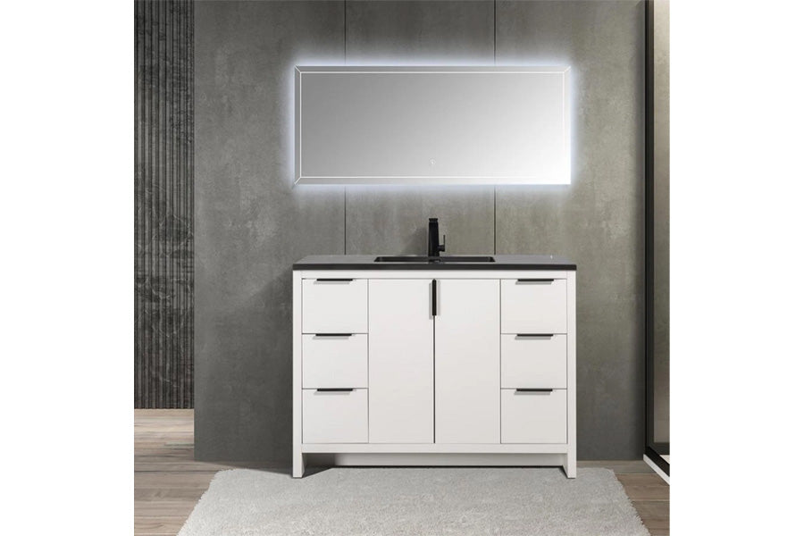 Elegant, graceful, free. This cabinet with Matte Black top and Glossy White body shows the elegance of low-key style. The simple but smart appearance, the style of minimalism, will become a special view in your bathroom.