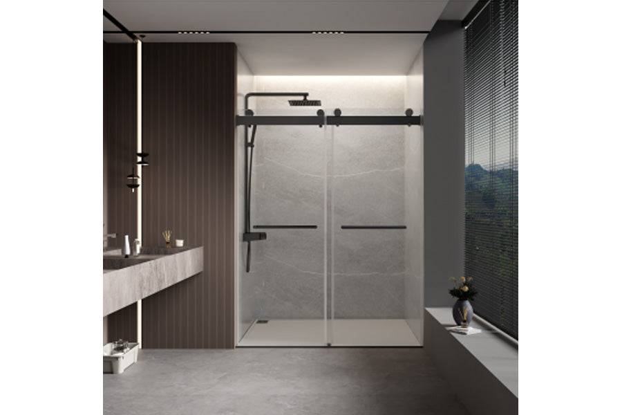 TONA 44 to 48 in. W x 76 in. H Double Sliding Frameless Soft-Close Shower Door with Premium 3/8 Inch (10mm) Thick Tampered Glass and Easy-cleaning Coating, Matte Black 23D02-48MB