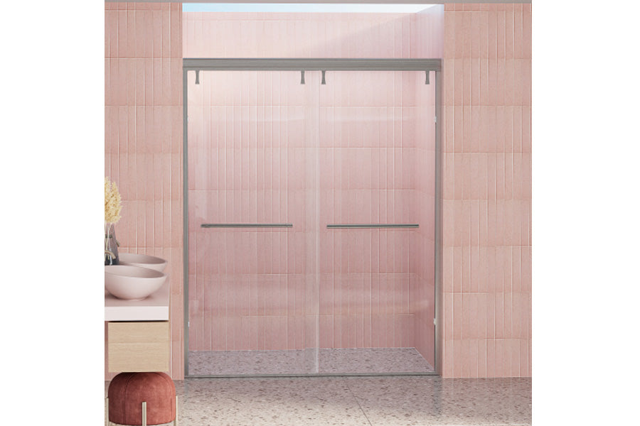 TONA 56 - 60 in. W x 72 in. H Semi-Frameless Shower Door, Double Sliding Shower Door, 1/4" (6mm) Clear Tempered Glass Shower Door with Explosion-Proof Film, Brushed Nickel 24D212S-60BN
