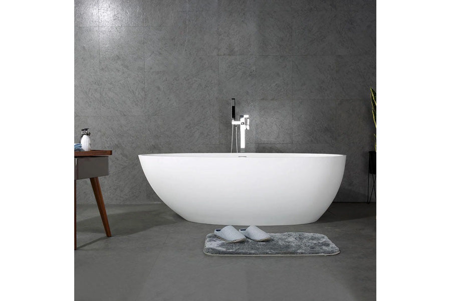 TONA Oceania 67" Matte White Oval Cast Stone Freestanding Bathtub Ice Crack Texture with Chrome-Plated Drain Cover & Overflow Cover